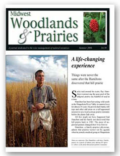 Profiles in Stewardship: Mark Mittelstadt protects rare species---Jack Pizzo, restoration evangelist---Larry Greenberg, retention-pond activist---Robert Engstrom, residential developer with a prairie vision---Dave Crawford shakes up the neighborhood with native landscaping---Bill Haywood on saving the oak-hickory forest---The Zales dedicate a prairie to their granddaughter in the Loess Hills---Zac Wedemeyer connects children with nature---Galen Bontrager produces healthy food on healthy land---About lady bugs and the less lovable Asian lady beetle---Weed wrench, root talon and other tools to yank out invasive species---The adaptable black cherry. |